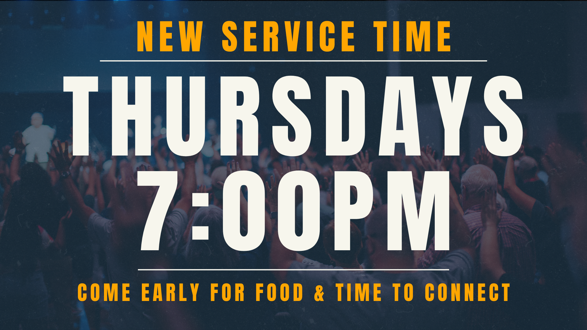Kick off your weekend early with our brand-new Thursday night service at 7:00pm.